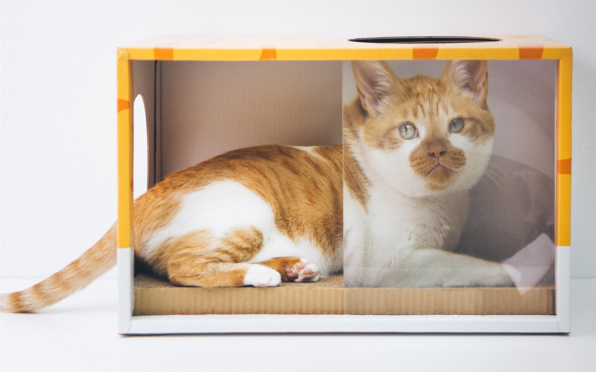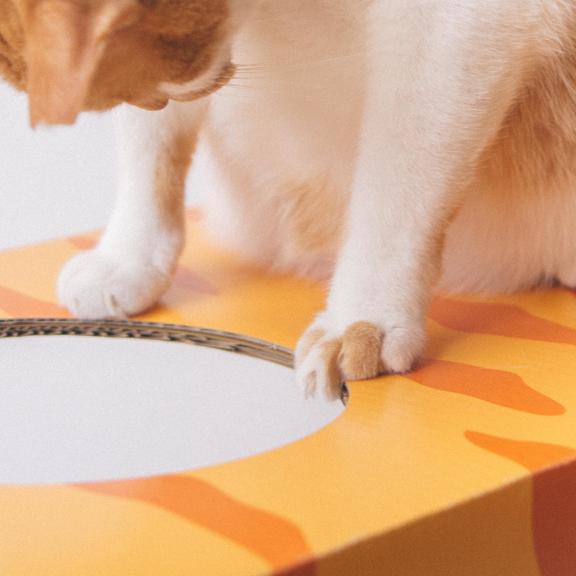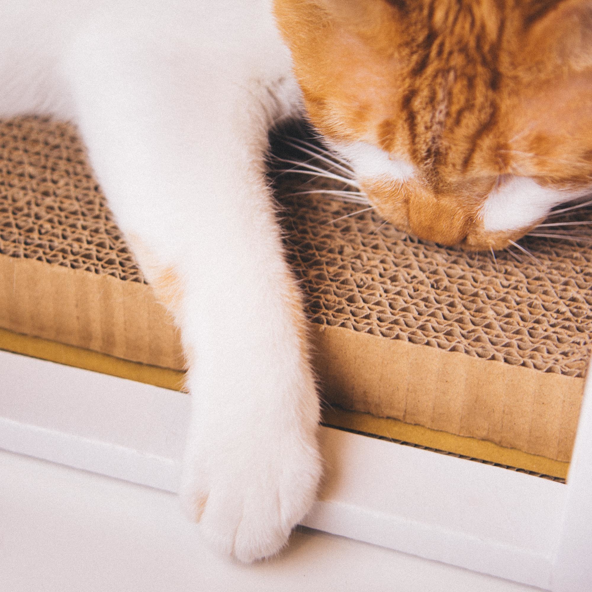 最 fit 抓板!屋內的微微隱密感,提供貓貓放心抓磨爪子的空間環境,抓完的紙屑也通通集中在屋內,不再滿家紙屑。