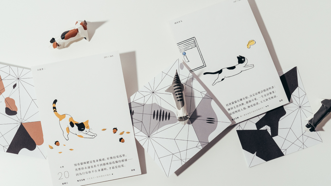 日曆的最後一頁印製的[ 立體摺紙貓咪圖樣 ],