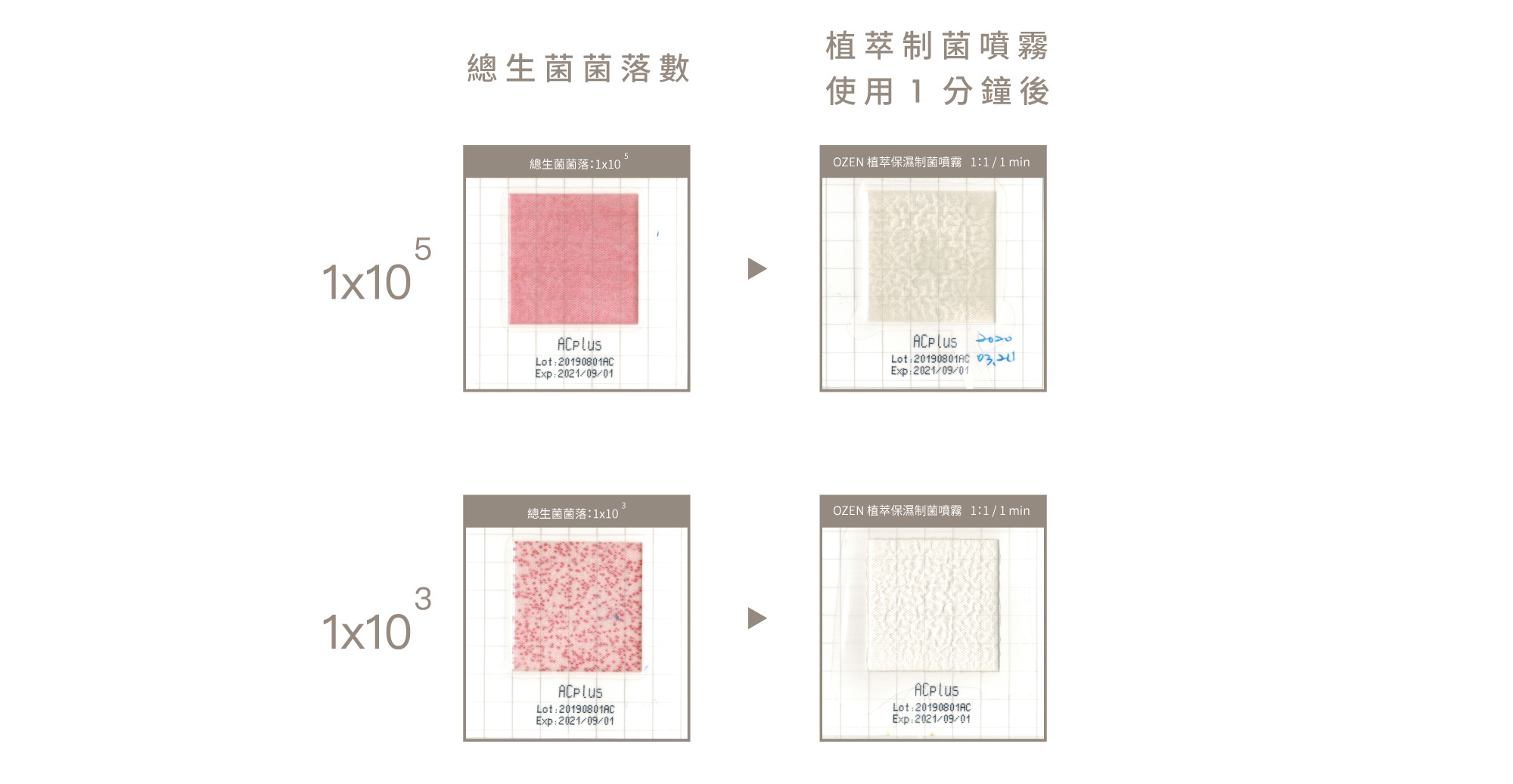 紅色點點 為生菌菌落,噴霧 60 秒後極速滅菌