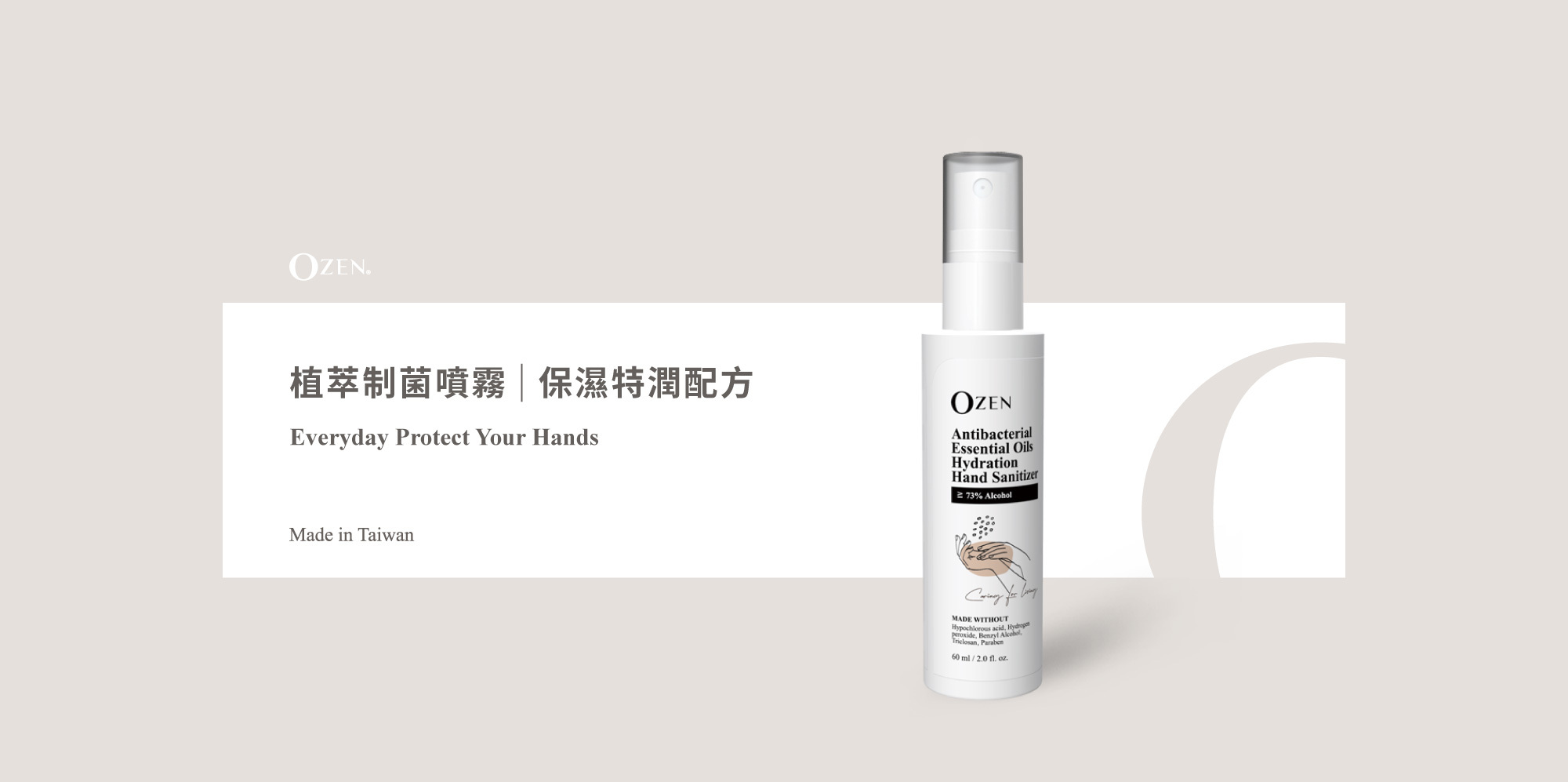 OZEN 植萃制菌噴霧以不傷害手部肌膚的前提下,使用植萃酒精並調整配方比例,加入有機植物油及保濕成分,使手部肌膚在清潔同時擁有滋潤的保護。
