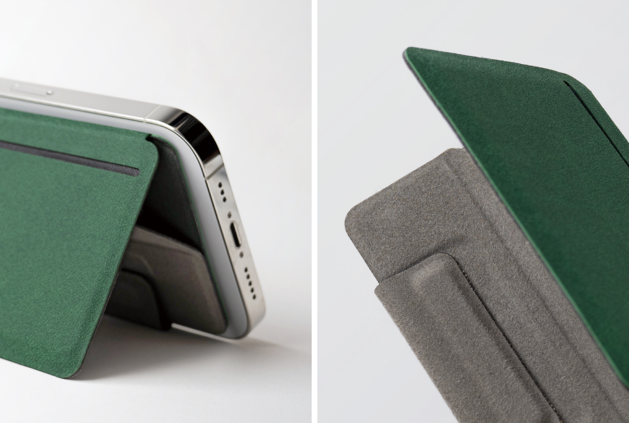 0.3 卡夾內層使用防滑麂皮質感,手機擺放時不易滑動。