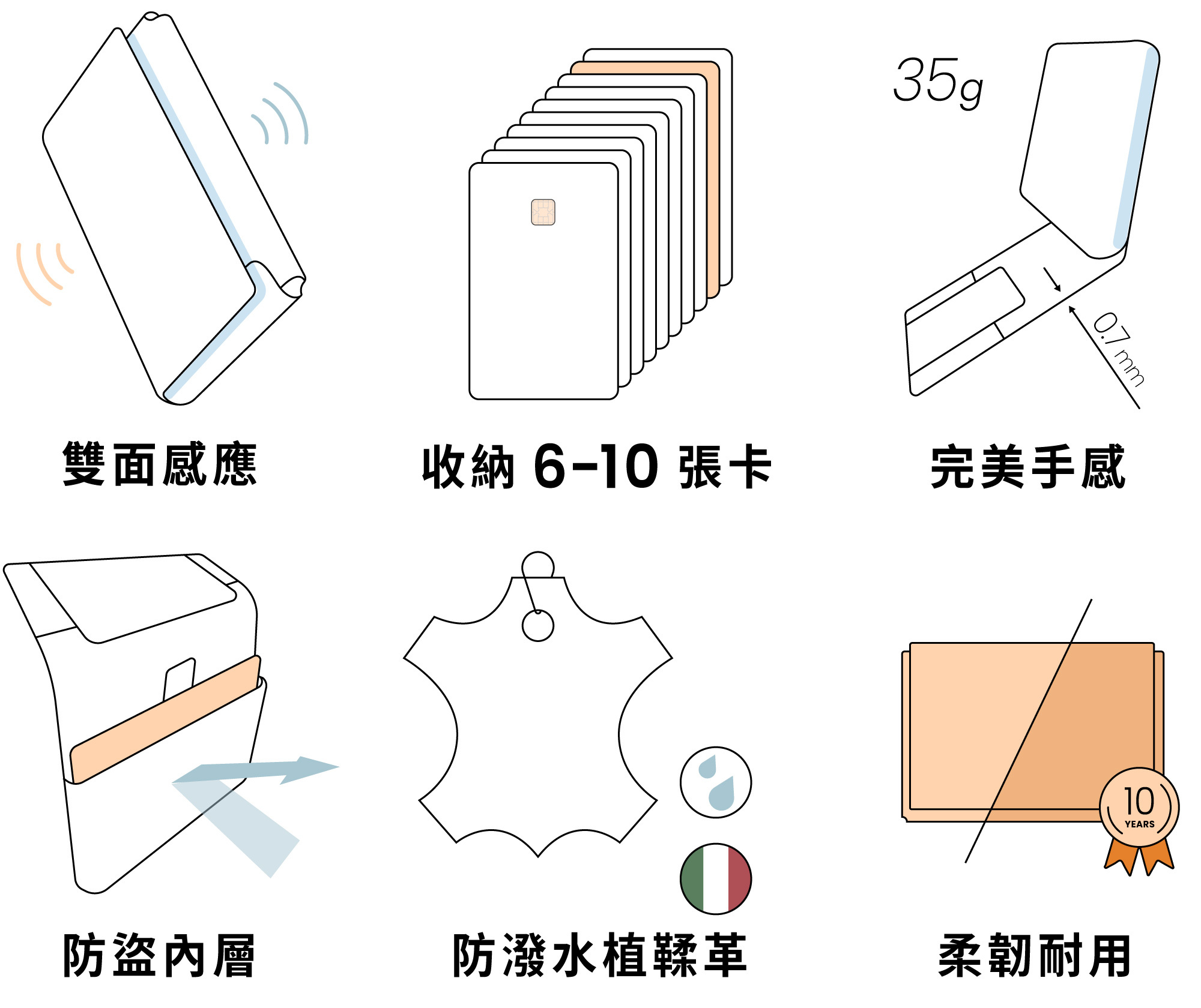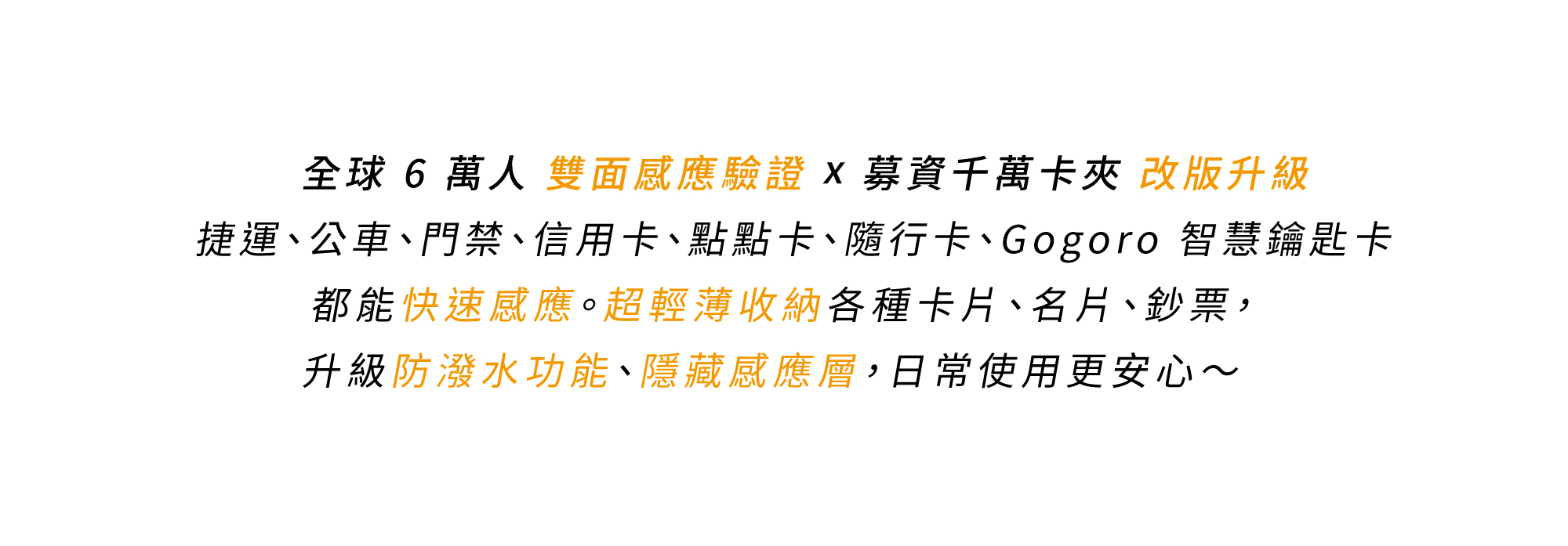全球 6 萬次雙面感應驗證 × 捷運、公車、信用卡、智慧鑰匙卡都能快速感應,超輕薄收納各種卡片、名片、鈔票!