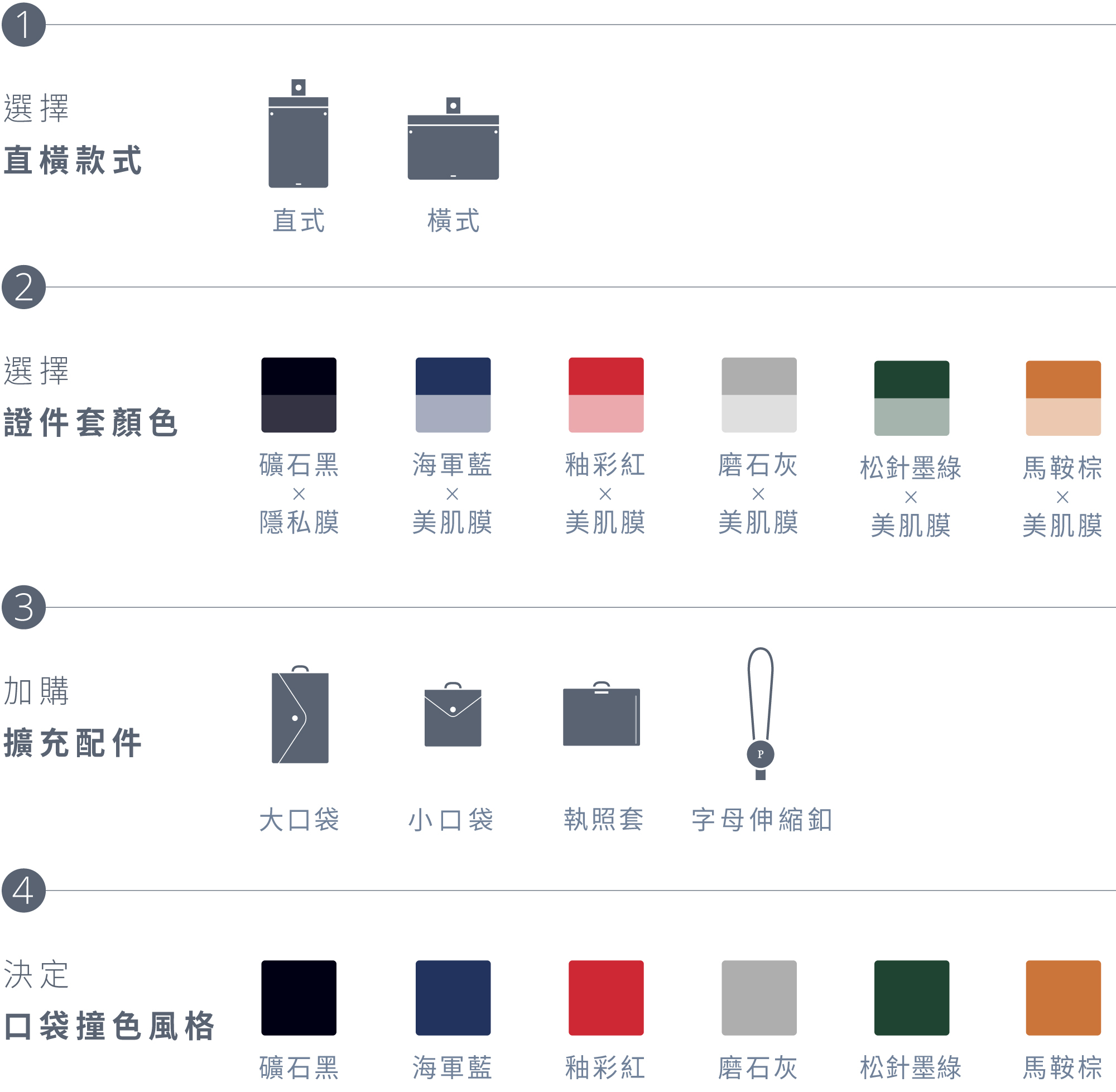0.9 Badge 共有 128 種組合任你自由選擇,跟著我們一起戴上最帥氣優雅的證件套吧!