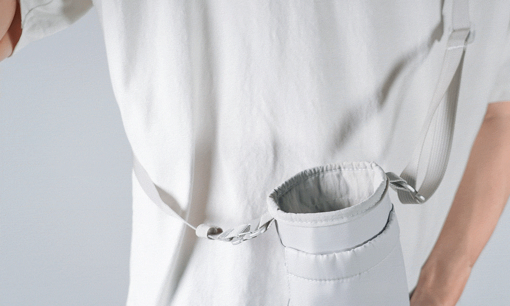 專為雙口水瓶 e⁺ 設計,內層採用 SBR 高彈性防護材質,外層搭配 Terylene 布料,