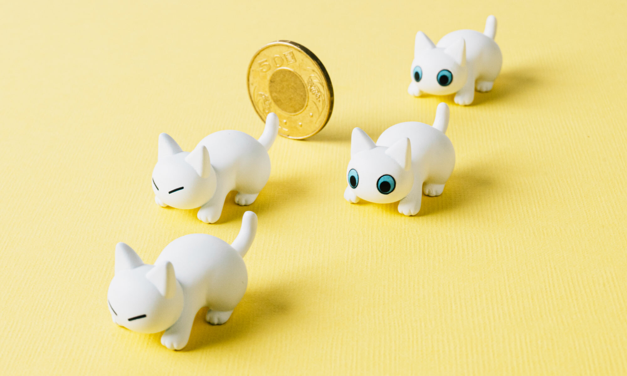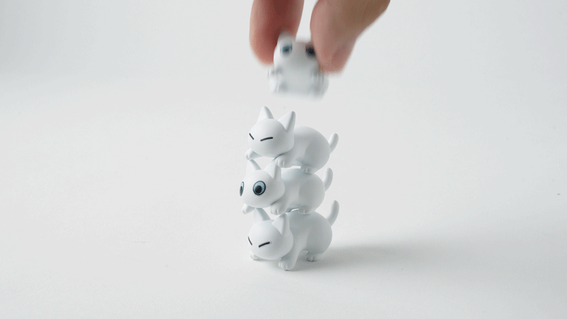 小貓疊疊樂每組包含:線條瞇瞇眼小白貓×2隻、水藍圓圓眼小白貓×2隻(一組共4隻)