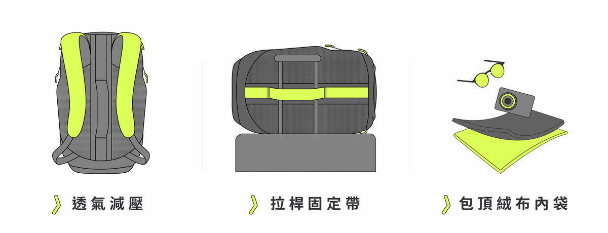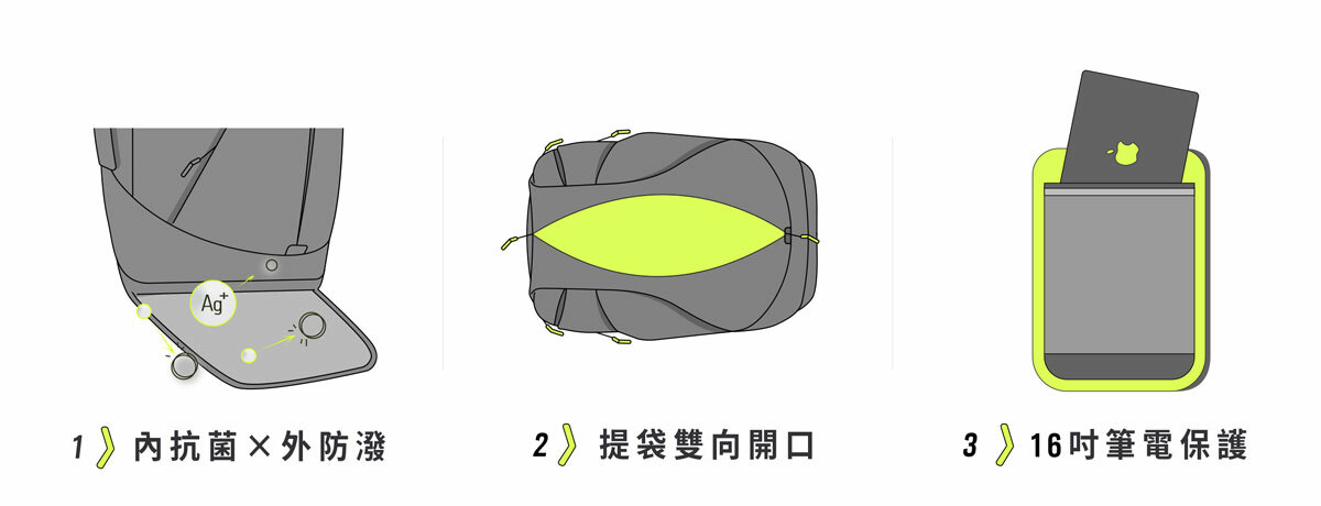 多隔層機能收納、防潑、抗菌、速收、好拿