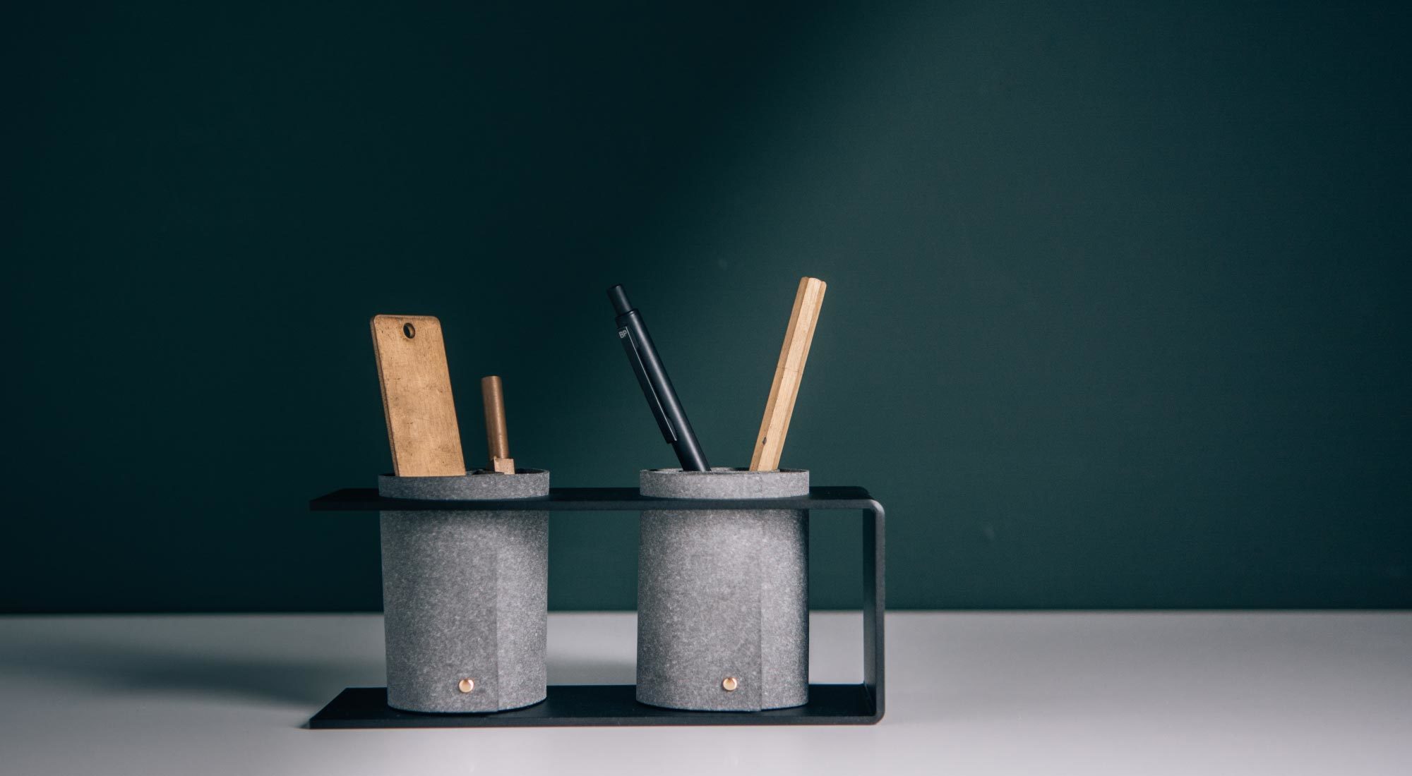 柔韌曲線 × 霧黑金屬|運用皮料捲曲時產生的縫隙,巧妙收納各種桌面物件!