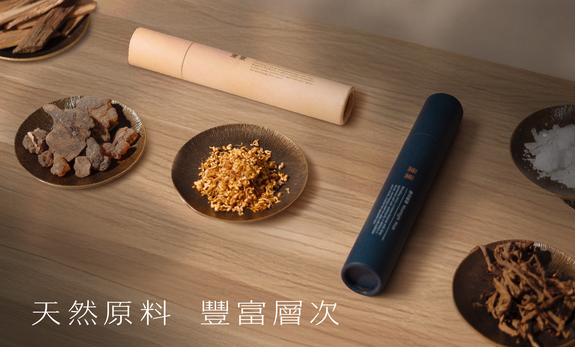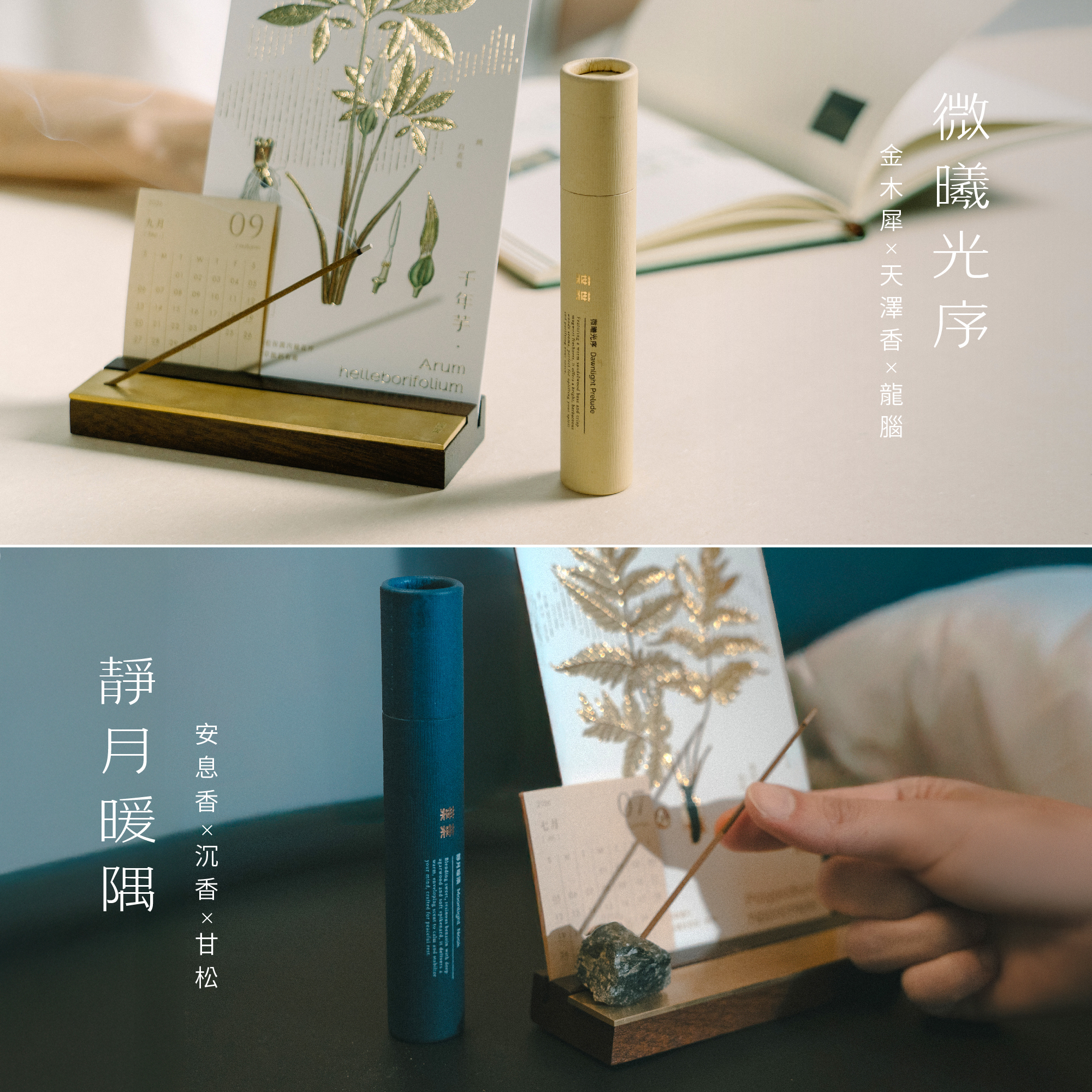 團隊梳理線香的使用情境,對應日夜輪替的生活時序,精心調製「專注醒神」及「舒緩安神」 2 種氣味主題的薰香。在不同情境下選擇搭配的香氣,為日常增添一點小小儀式。
